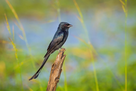 Bronze Drongo bird (Dicrurus aeneus) in nature, Thailand