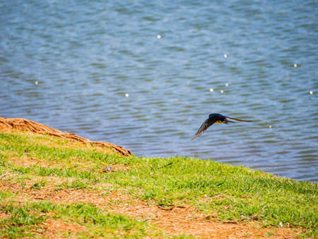A wholly black bird with a distinctive forked tail and aggressive behaviour.