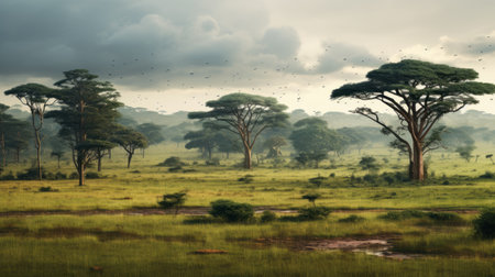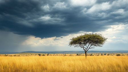 Dramatic African Savanna Landscape under Stormy Skies