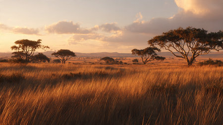 Golden Hour Savannah – Warm Light over Wild Grass