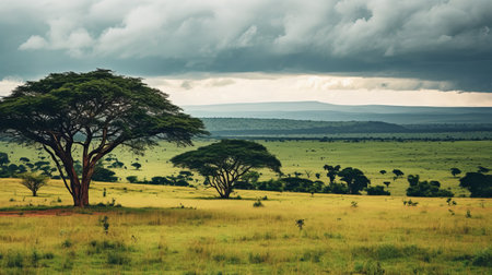 Dramatic African Savanna Landscape under Stormy Skies