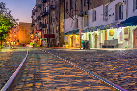 Old historical city Savannah in Georgia. Southern USA cityscape at sunset