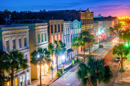Historical downtown area of Charleston, South Carolina, USA at twilight.
