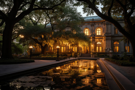 Golden Facade of the Telfair Museum in Savannah., generative AI