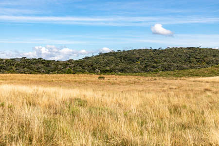 Farm field with forest and blue sky, Cambara do Sul, Rio Grande do Sul, Brazil
