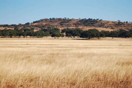African landscapes -hot yellow bush, trees and blue sky. Conceptual african background.