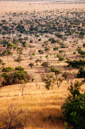African savanna landscape at sunset. Serengeti National Park, Tanzania