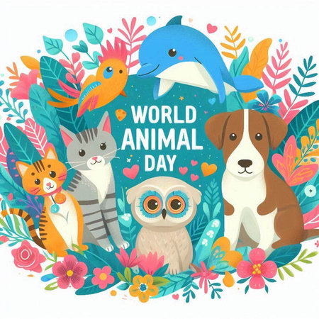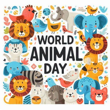 World Animal Day. Vector illustration with cute cartoon animals. Vector illustration.