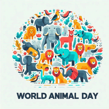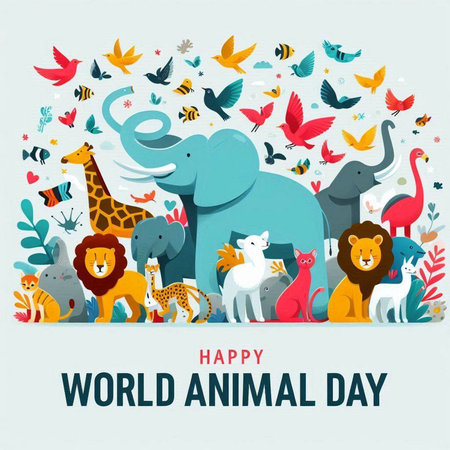 World Animal Day vector illustration with cute cartoon animals in flat style.