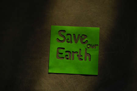 Earth globe, save the planet message, dark stone background. Possible use environmental awareness