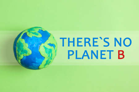 Ecological concept with globe on a green background and text. There is no planet B. Earth Day, ecology and nature protect.