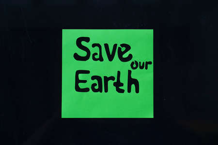 Earth globe with SAVE THE PLANET message on dark background