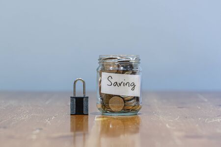 Save money and account banking for finance business concept, Coin money in bottle on business office table, Savings for retirement and investing concept