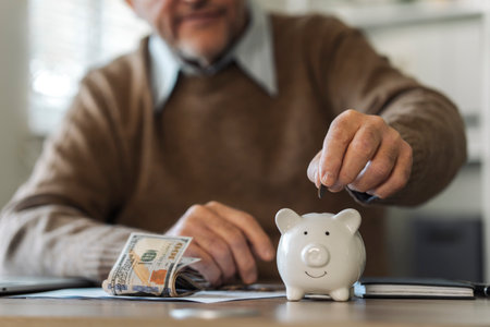Senior Man Saving Money in Piggy Bank