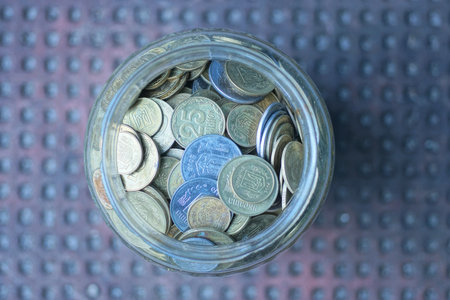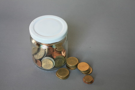 A close-up of a jar of coins placed firmly on a flat surface, representing stability.