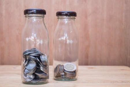 Saving money bottle for managment investing your business in the futere . Collection finance concept.