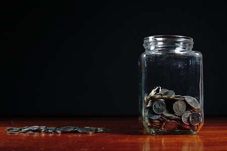 coins glass jar with copy space. High quality beautiful photo concept