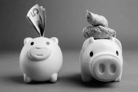 Two Piggy Banks In Black And White