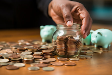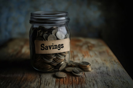 A hand placing a coin into a jar labeled Savings, symbolizing smart financial planning