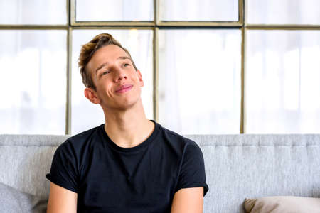 A young handsome man relaxing on the sofa in a loft style apartm