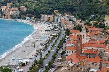 view of sea village of Noli with torre del commune, Noli, Savona Province, Ligury, Italy