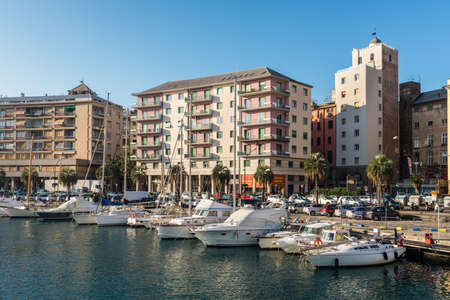 Port of city of Bastia on the coast of the mediterranean sea on Corsica island in the evening, France