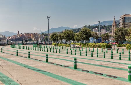 Italian city of La Spezia. Bay port with boats. Pier in the Ligurian blue Sea