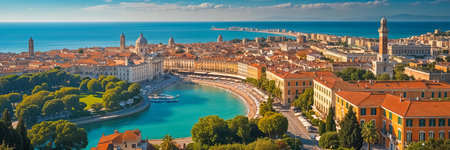 Panoramic aerial view of San Remo in a beautiful summer day, Italy