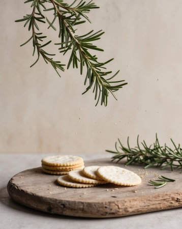 AI Generated. a group of crackers with rosemary leaves