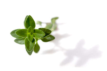 Sprig of lemon thyme, isolated on white with shadow.