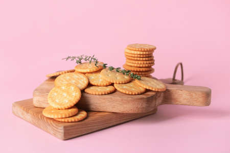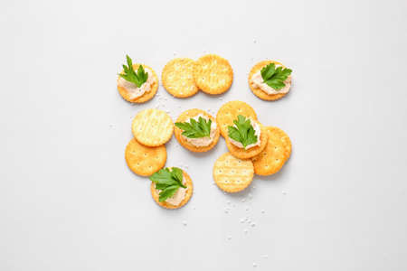 Sweet Crunchy Crackers isolated on abstract background. Flay Lay. Copy Space.