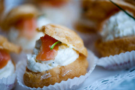 Mini profiteroles with shrimp mousse close up