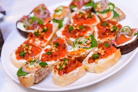 Appetising of different types of finger food for appetizer. Selective focus