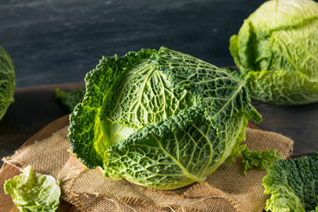 Raw Organic Savoy Cabbage Head Ready For Cooking