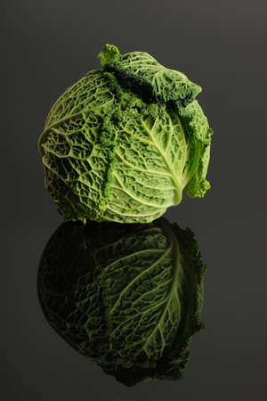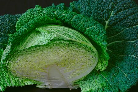Savoy cabbage and black background