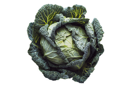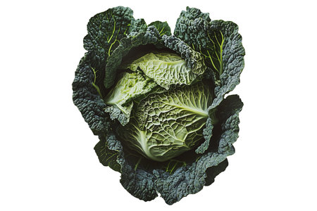 Whole green cabbage with vibrant outer leaves isolated on a transparent background. Fresh and organic vegetable concept, healthy food ingredient