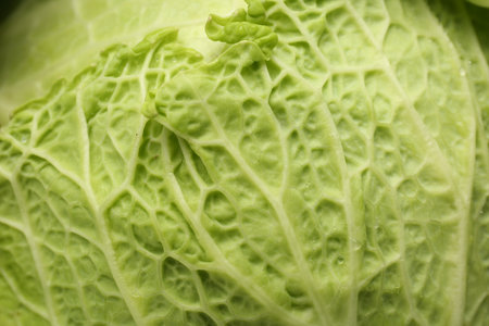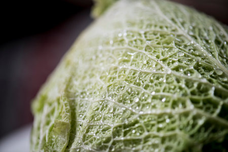 Close up shot of savoy cabbage leaf