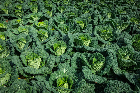 a field full of beautiful green savoy cabbage outdoors