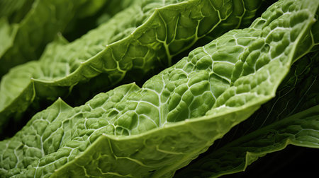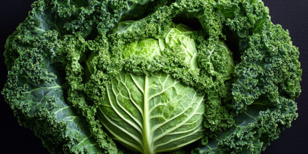 Macro shot of fresh savoy cabbage, showing its intricate, textured green leaves and vibrant color, perfect for food and botanical visuals.