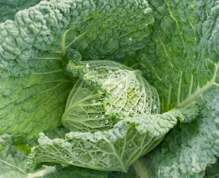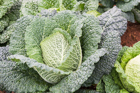 detail of savoy cabbage growing in the field