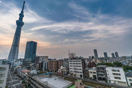 TOKYO, JAPAN - June 22, 2018: Tokyo Sky Tree, sunset and blue sky. Tokyo Sky Tree is one of the famous landmark in Tokyo. It is the tallest structure in world when built.
