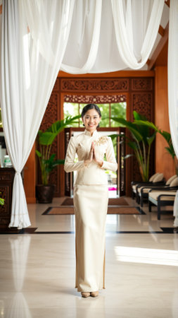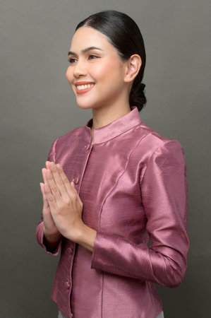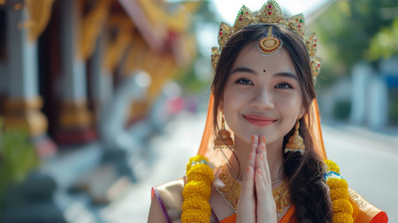 Thai Woman in Traditional Dress Performing Greeting. Generative ai. High quality illustration