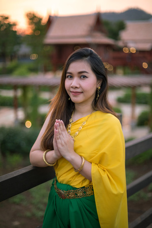 Portrait of a Thai woman wearing Thai traditional dress, as a guideline for presenting Thailand tourism business.