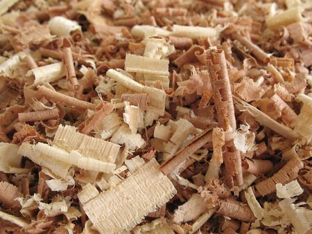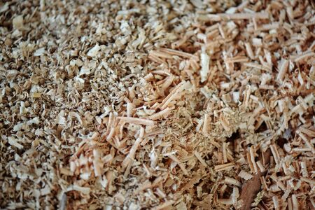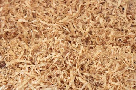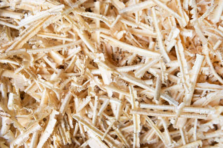 Close up texture of pine wood shavings, used as pet bedding and litter