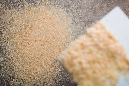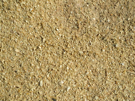 Sawdust texture background. Wood dust background closeup. Top view of brown sawdust texture.