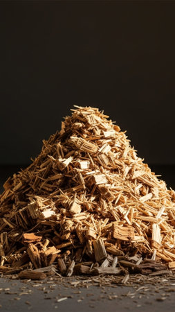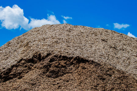 Pile of wood chips and sawdust used for biofuel manufacturing