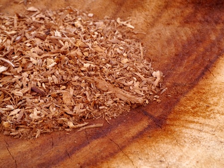 Sawdust background, close-up