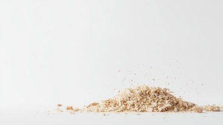 Sawdust on a white isolated background top view with place for text or inscription. Wood dust texture. Sawdust pattern close up background pattern.