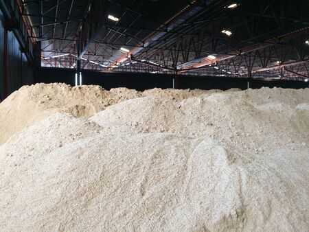 Pile of sawdust in wooden factory