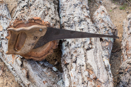 The old saw against the cut tree outdoor